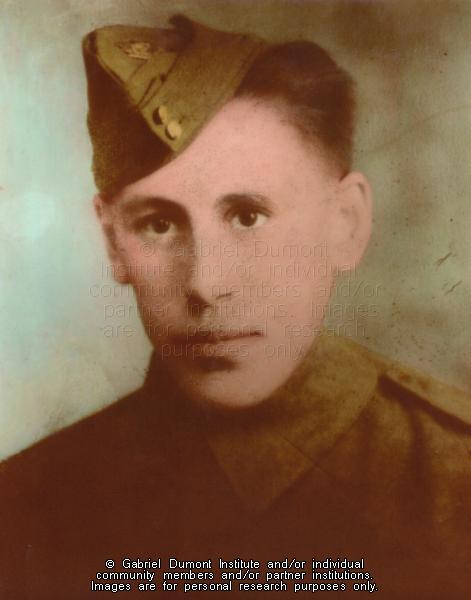 | Description: | Photograph of Louis Nolin, a World War II veteran who now lives near Turtleford, Saskatchewan. This is a close-up shot of Louis from the shoulders up wearing his military uniform. |