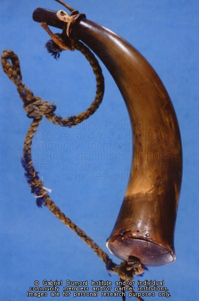 | Description: | Photograph of a powder horn. This item is part of the Gabriel Dumont Institute Museum Collection. |