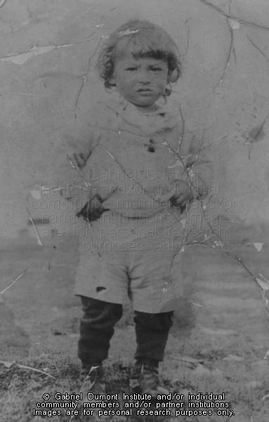 | Description: | Photograph of young Melchoir Roy posed outdoors. He is wearing a light coloured shirt and shorts over top of dark coloured pants. Melchoir is Rita Bouvier's uncle. |