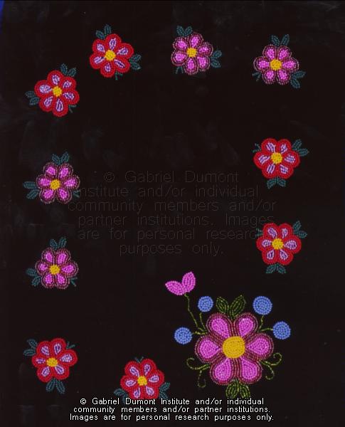 Description: Photograph of beadwork created by Isabelle Impey (Dorion) of Cumberland House, Saskatchewan. Panel 2 of 10. This item is part of the Gabriel Dumont Institute Museum Collection.
