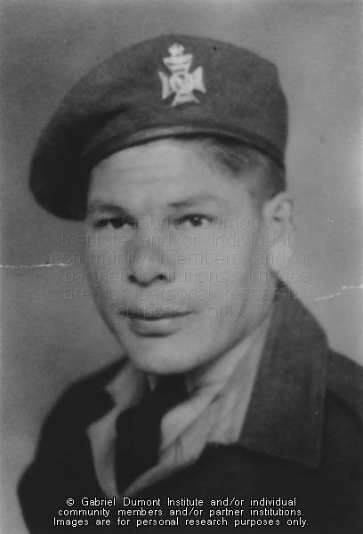 | Description: | Photograph of Jim Lavalley from World War II in uniform. This is a close-up shot showing him from the shoulders upward. |