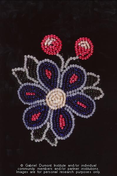| Description: | Photograph of beadwork detail from a vest made by Isabelle Impey (Dorion) of Cumberland House, Saskatchewan. The vest belonged to Louis Dorion. |