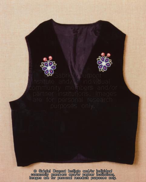 | Description: | Photograph of a beaded vest made by Isabelle Impey (Dorion) of Cumberland House, Saskatchewan. The vest belonged to Louis Dorion. |