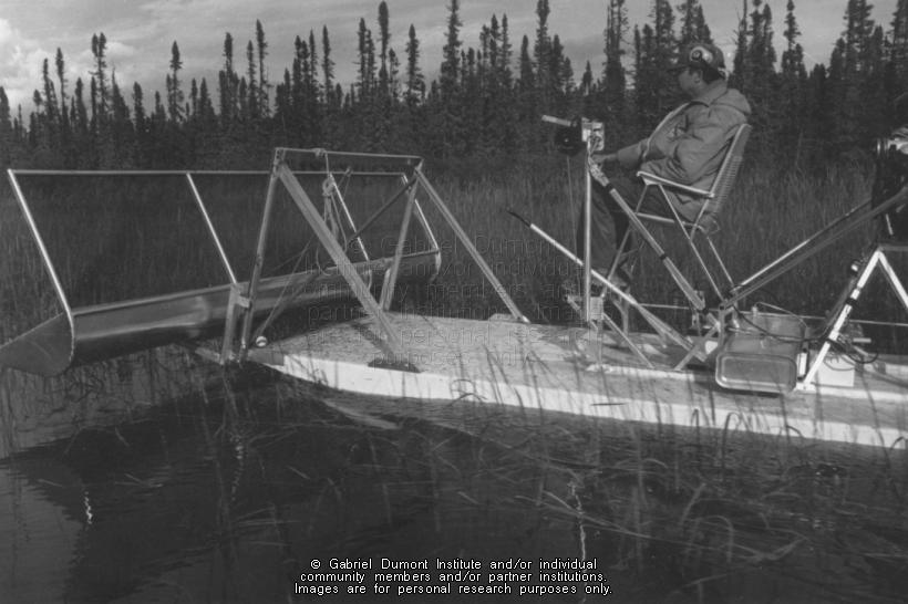 | Description: | Photograph of a man on a boat used in the harvesting of wild rice. This image originally appeared in or was taken for New Breed Magazine in the 1970s-80s. |