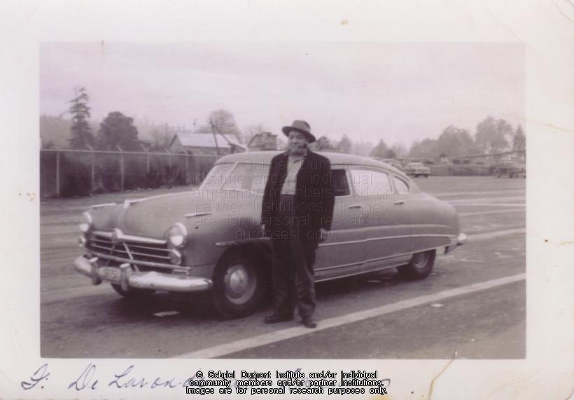 | Description: | Photograph of Fred De Laronde in front of a car in Naniamo, British Columbia. |