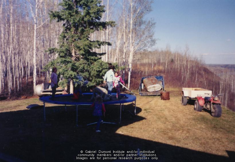 | Description: | Photograph of children having fun bouncing on a trampoline at Larry Chartrand's parents place in the Paddle Prairie Metis Settlements. |