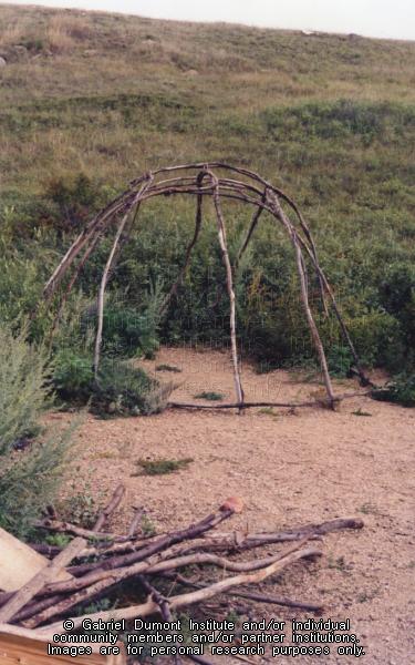| Description: | Photograph of a frame used to make a sweat lodge. |