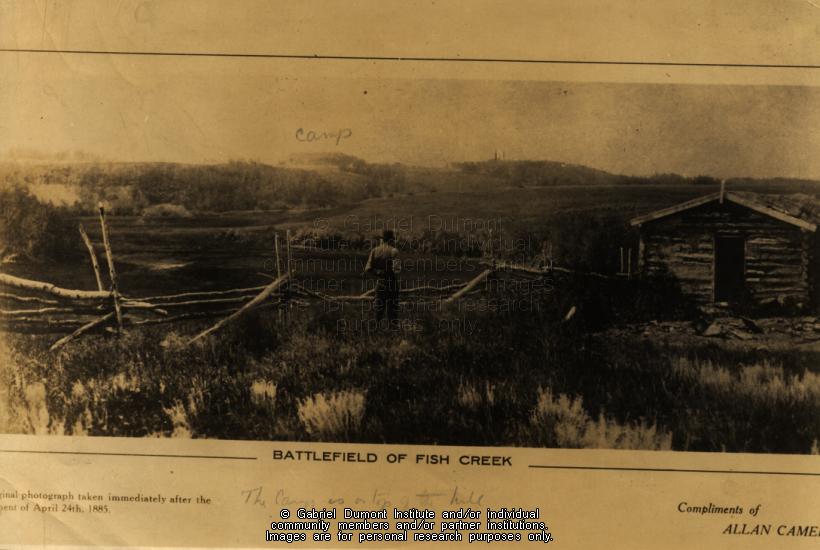 This image is part of the A.C.D. Pigott Collection, which was acquired by the Gabriel Dumont Institute in October 1991 by the Ted Pappas family of Vancouver, British Columbia. The collection includes: Louis Riel’s English-French dictionary, Lieutenant Colonel Pigott’s 1885 Resistance battlefield manuscript, and a number of artifacts taken off the battlefield including: an inscribed watch, a pipe, a bullet maker and a buffalo powder horn (both from the Métis trenches), a carved wooden container taken from Big Bear’s camp, a First Nations decorative bracelet and horsehair braiding, which may have been traded for food by somebody captured by the Boulton’s Scouts. |