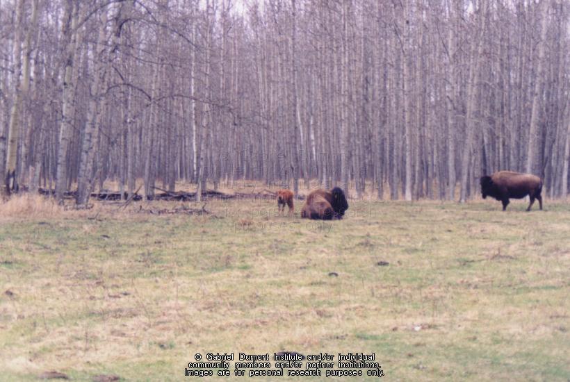 | Description: | Photograph of two adult bison and a calf at Elk Island National Park, Alberta |