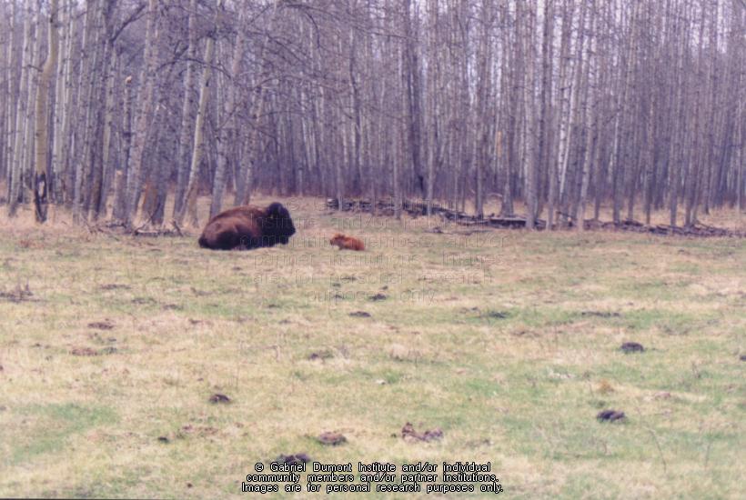 | Description: | Photograph of a mother buffalo and her calf resting at Elk Island National Park, Alberta. |