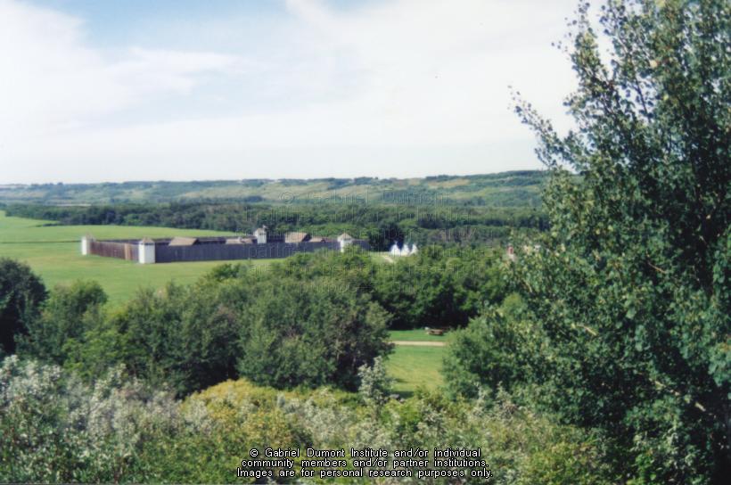 | Description: | Photograph of Fort Carlton taken from on a hill. |