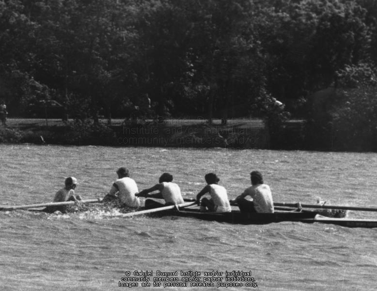 | Description: | Photograph of a rowing crew. Three of the rowers are Rodger Ross, April Boyd and Larry Laliberte. This image originally appeared in or was taken for New Breed Magazine in 1981. This was at a Media contest on Canada Day in 1981. Larry Laliberte was working for New Breed and Rodger Ross and April Boyd were working for Wehta Matowin, which means communicating with each other. |