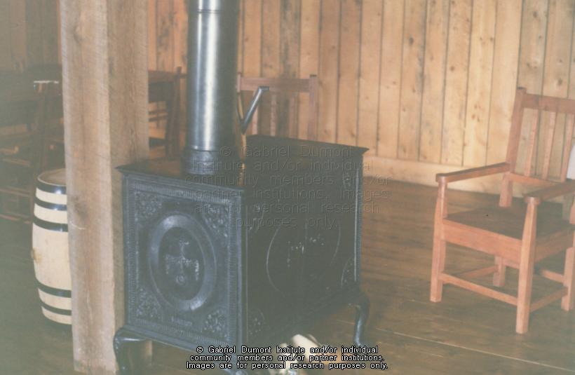 | Description: | Photograph of a stove with moccasins underneath it. |