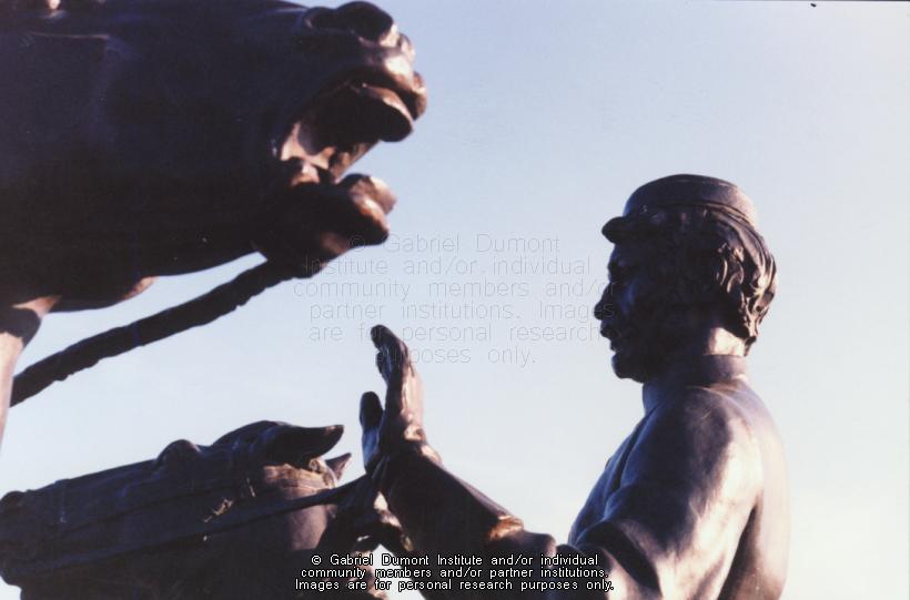 | Description: | Photograph of a statue depicting the meeting of North West Mounted Police Superintendant James Walsh and Sioux Chief Sitting Bull. |