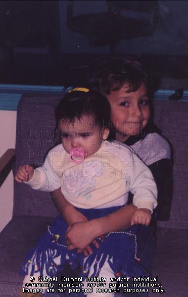 | Description: | Photograph of a child holding onto a baby at the Prince Albert Rendevous Day at the Prince Albert Indian and Métis Frienship Centre. |
