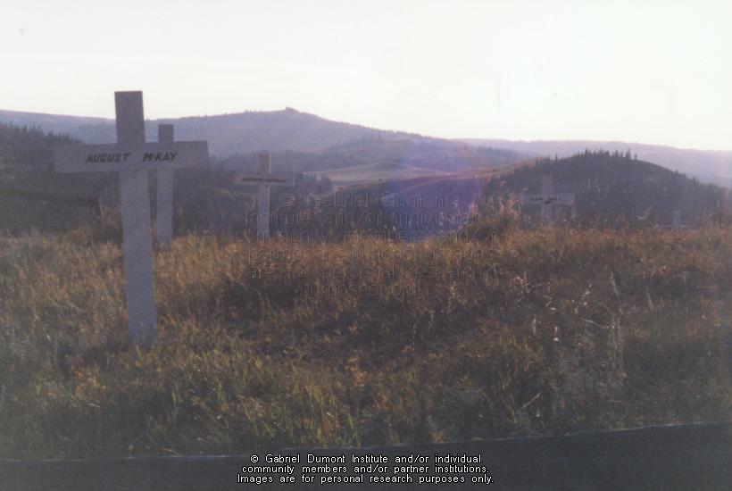 | Description: | Photograph of August McKay's gravesite and others at Fort Walsh Civilian Cemetery |