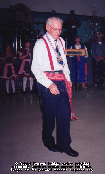 Description: Photograph of a Métis Elder, Max Lucier doing a jig.