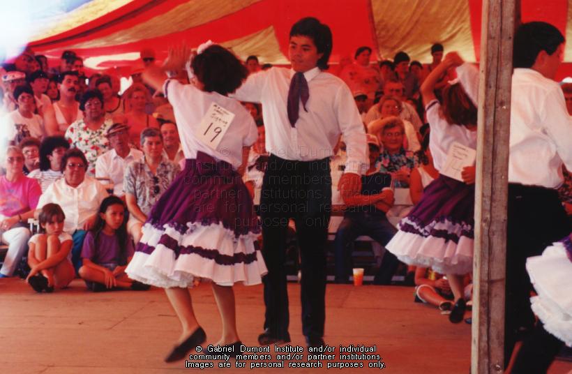 | Description: | Photograph of competitors in the jigging contest at Batoche. |