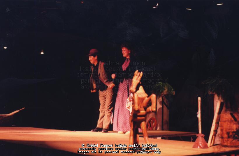 | Description: | Photograph of two SUNTEP Prince Albert students acting in a play. |