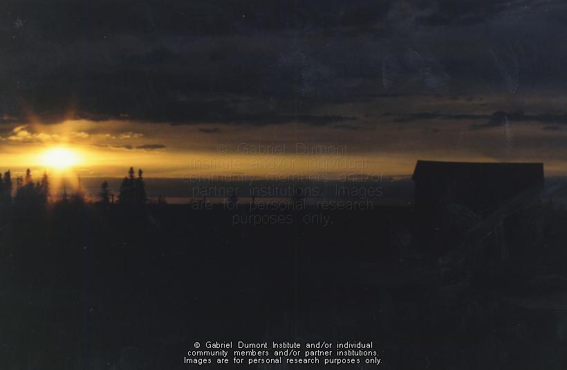 | Description: | Photograph of a sun rise on a Prairie farm. |