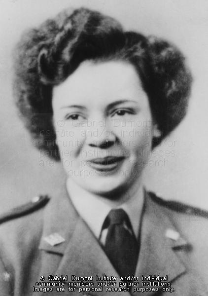 Description: Photograph of Métis veteran Edith Hilda Merrifield, of the Canadian Women's Army Corps, from the Pasqua Reserve, Saskatchewan.