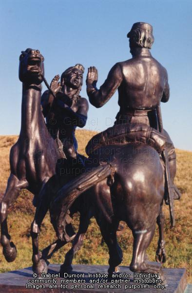 | Description: | Photograph of a statue of a meeting of North West Mounted Police Superintendant James Walsh and Sioux Chief Sitting Bull. |