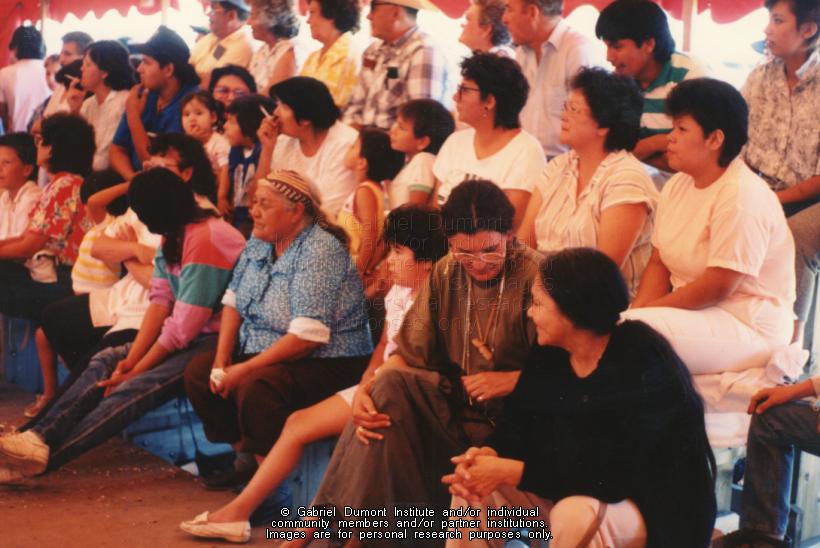 | Description: | Photograph of the crowd at Back to Batoche Days as they watch the jigging competition. |