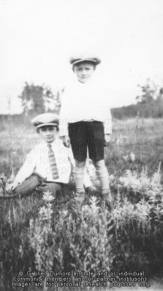 | Description: | Photograph of two well-dressed young boys posing for a photo in a field. |