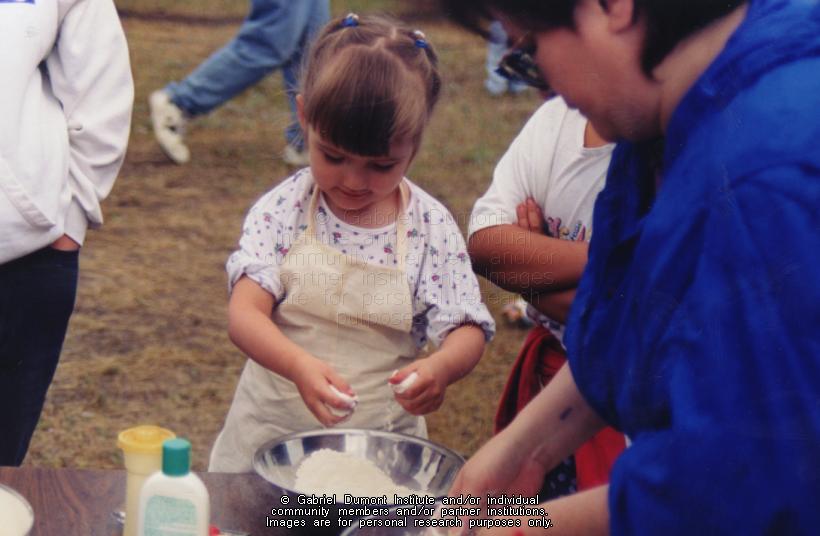 | Description: | Photgraph of a young girl learning to make bannock. |