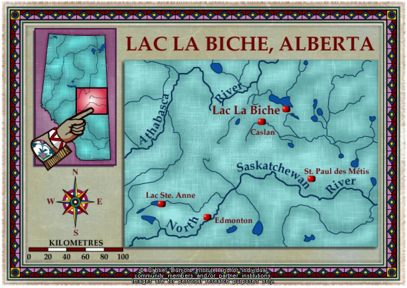 | Description: | This is a map of Lac La Biche, Alberta, the oldest Métis settlement in the province. The map was originally produced by the Gabriel Dumont Institute for the CD-ROM, "The Metis: Our People, Our Story". |