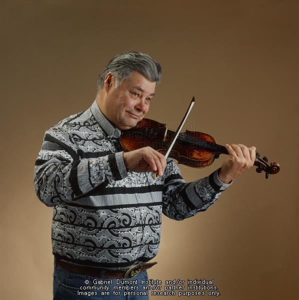 | Description: | Photograph of Métis fiddler John Arcand. |