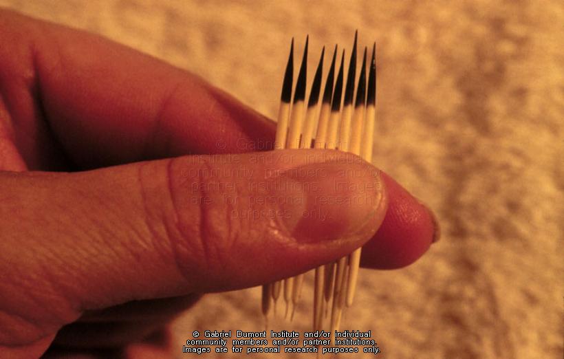 | Description: | Photograph of quills used for quill and bead earrings. |