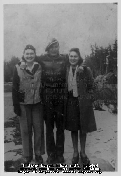 | Description: | Photograph of Edward King with Irene Breland and Kathleen Racette taken while on leave during World War II or immediately after the war. |