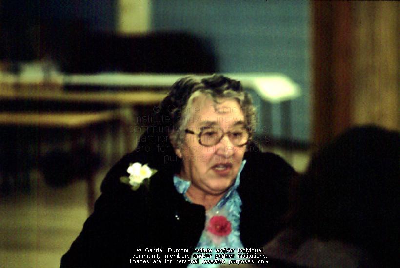 | Description: | Photograph of an Elder at an Association of Métis and Non-Status Indians of Saskatchewan (AMNSIS) Local 21, Sakitowak meeting. |