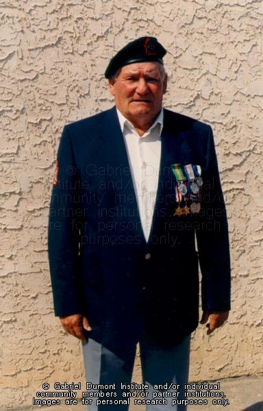 | Description: | Photograph of Métis veteran Vital Morin at the Prince Albert Métis Fall Festival in 1996. |