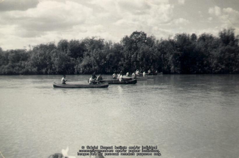 | Description: | Photograph of people participating in the canoe races at Cumberland House, Saskatchewan taken in the 1960s. |