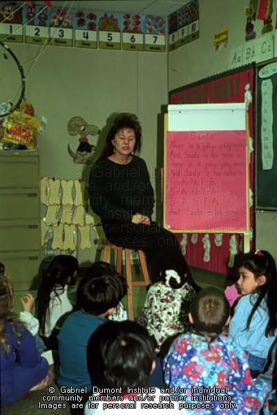 | Description: | A Saskatchewan Urban Native Teacher Education Program (SUNTEP) student teaching an elementary class. |