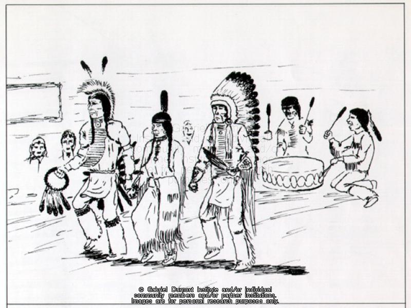Illustration, of the Cree relatives attending a Métis wedding, by Peter Myo for the book "A Métis Wedding". |