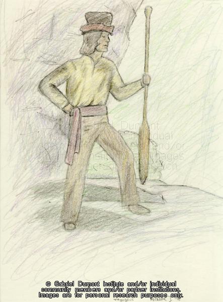 | Description: | Illustration, of a voyageur with paddle, by Michelle Isbister. |