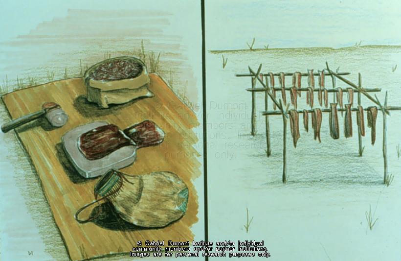 | Description: | Illustration of the tools used for the making of pemmican from "A Comparison of Two Cultures". |