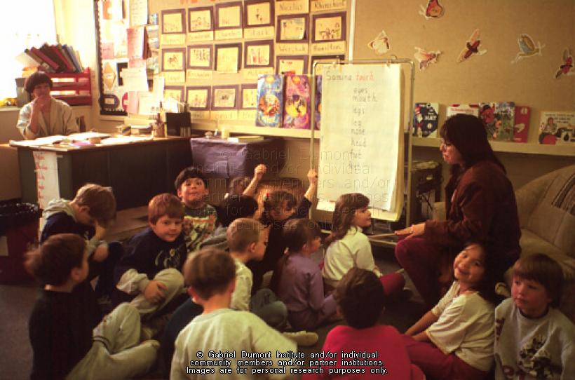 | Description: | A Saskatchewan Urban Native Teacher Education Program (SUNTEP) student teaching an elementary class. |