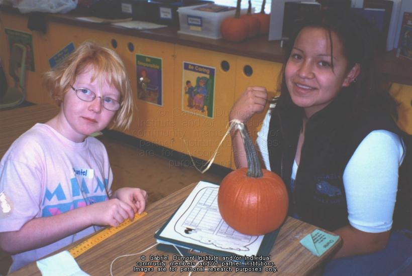 | Description: | Photograph of a Saskatchewan Urban Native Teacher Education Program (SUNTEP) student helping an elementary student. |