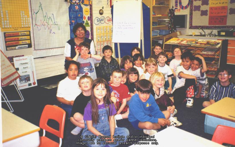 | Description: | Photograph of a Saskatchewan Urban Native Teacher Education Program (SUNTEP) student and an elementary class. |