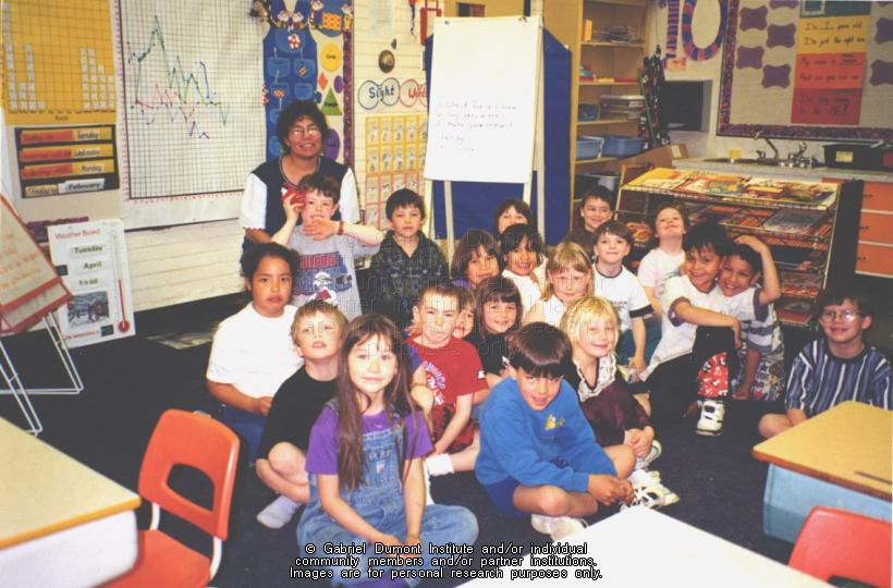 | Description: | Photograph of a Saskatchewan Urban Native Teacher Education Program (SUNTEP) student with an elementary class. |