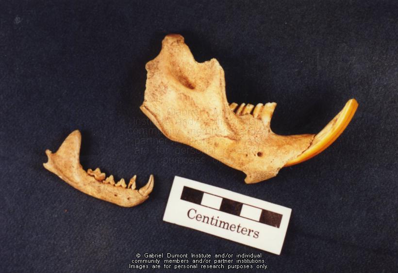 | Description: | Photograph of mandible (jaw) bones found during a Cumberland House, Saskatchewan archaeological dig. |