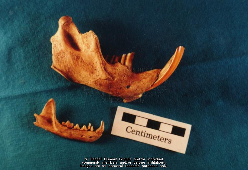 | Description: | Photograph of mandible (jaw) bones found during a Cumberland House, Saskatchewan archaeological dig. |
