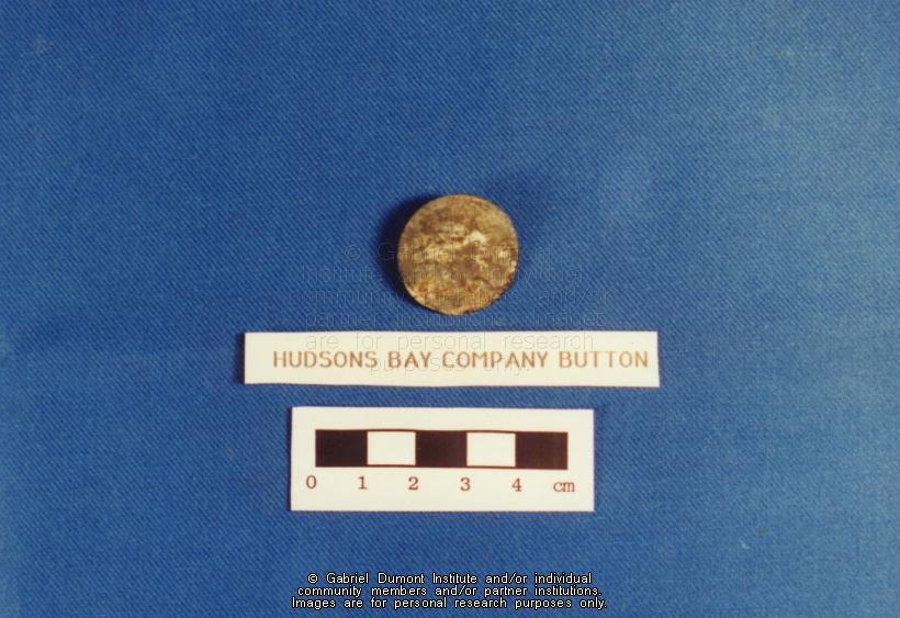 | Description: | Photograph of a Hudson's Bay Company or HBC button found during a Cumberland House, Saskatchewan archaeological dig. |