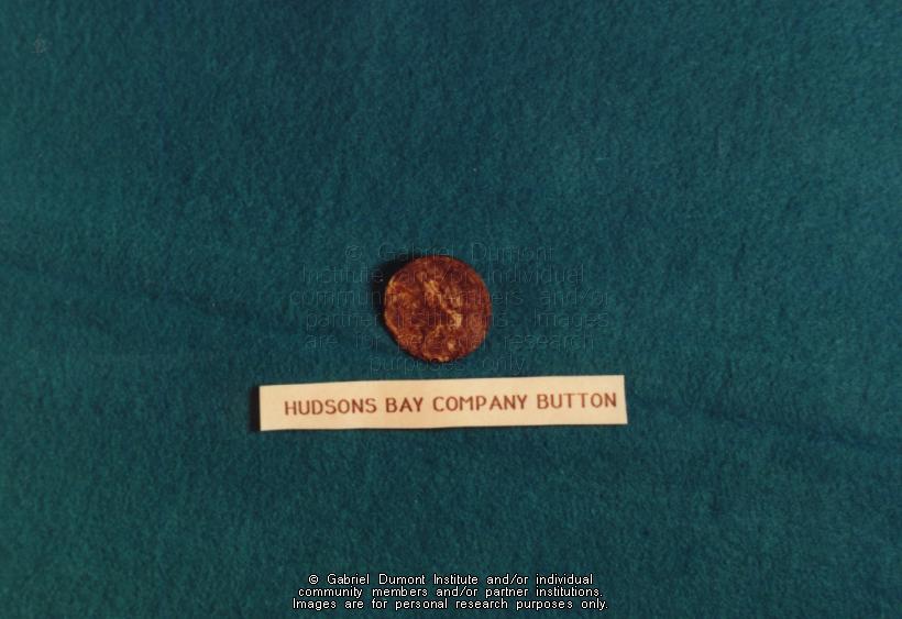 | Description: | Photograph of a Hudson's Bay Company or HBC button found during a Cumberland House, Saskatchewan archaeological dig. |