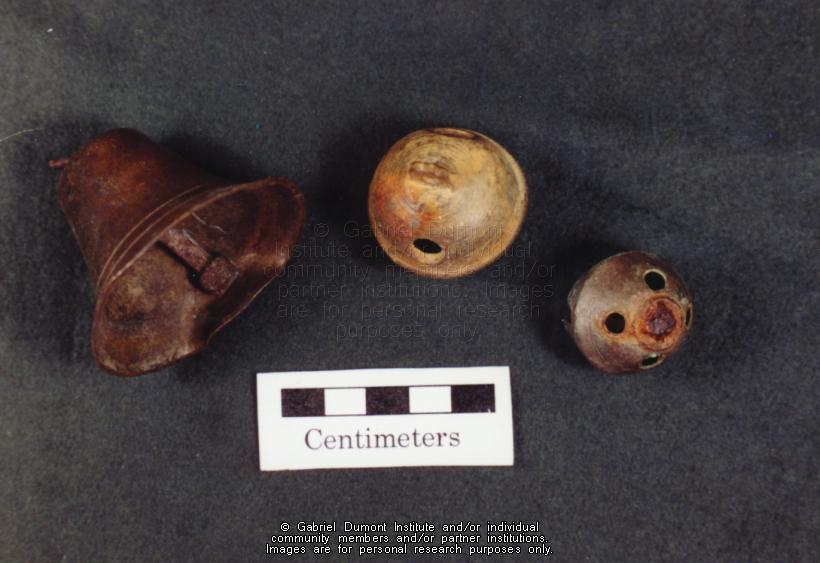 | Description: | Photograph of various bells found during a Cumberland House, Saskatchewan archaeological dig. |