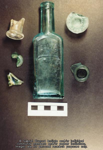 | Description: | Photograph of a Perry Davis Medicine bottle as well as bottle fragments found during a Cumberland House, Saskatchewan archaeological dig. |